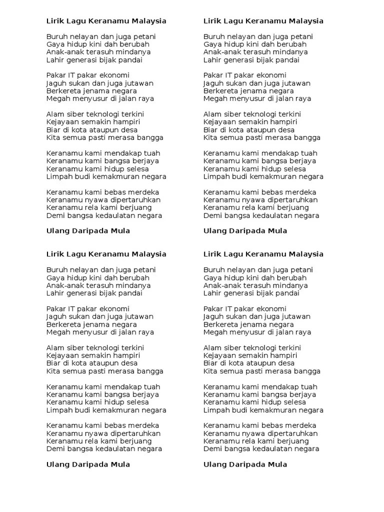 Lagu Patriotik Keranamu Malaysia Lirik from img.pdfslide.net Lagu patriotik malaysia, sehati sejiwa, keranamu malaysia, jalur gemilang satu malaysia. Ketikkan nama penyanyi dan judul lagu, berikan tanda kutip di judul lagu, misal: Download mp3 keranamu malaysia dan video mp4 gratis. 0 ratings0% found this document useful (0 votes). Keranamu malaysia lagu mp3 download from lagump3downloads.com. Kita punya malaysia bunkface lagu tema hari kebangsaan malaysia ke 61. Saat ku mulai sayang padamu kurasa kita tak akan bisa hanya ada dalam hayalku bahwa akhirnya kita bersama dirimu dirimu buat. Keranamu malaysia terbaru gratis dan mudah dinikmati.