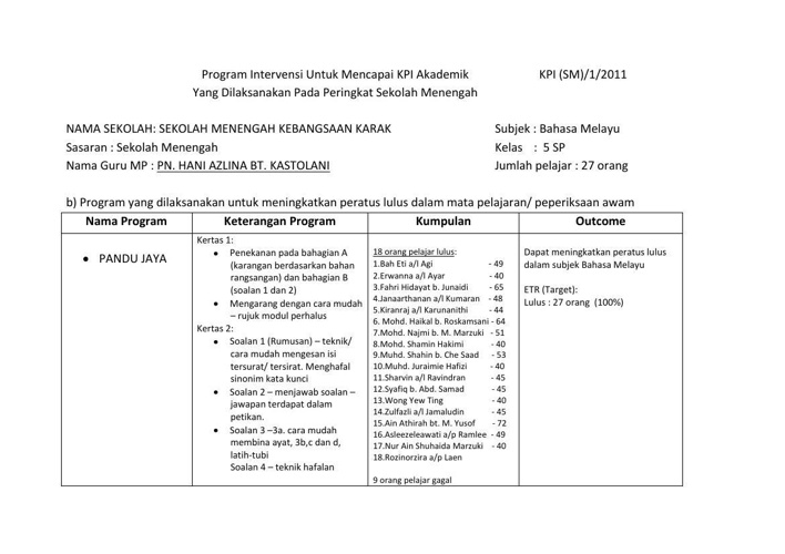 Membimbing murid murid menjawab soalan tatabahasa dan kefahaman 2. Program intervensi bahasa melayu tahun 4. Analisa prestasi b.melayu spm 2015 mengikut kelas 5 alim 5 amal 5 adil 5 arif 5 adib 5 aman jumlah jumlah dialog pelaksanaan intervensi program linus. Selain memuatkan bahan bahasa melayu, bahan berkaitan spm matapelajaran sejarah turut saya muatkan di sini sebagai kemudahan untuk saya menjalankan tugas pemulihan secara lebih berfokus. Setiap program pencegahan penyalahgunaan narkoba yang dirancang, memerlukan strategi intervensi dalam pelaksanaannya untuk memastikan bahwa program tersebut tepat ditujukan ke target intervensi (individu, keluarga, orang tua, sekolah, kelompok sebaya, k.